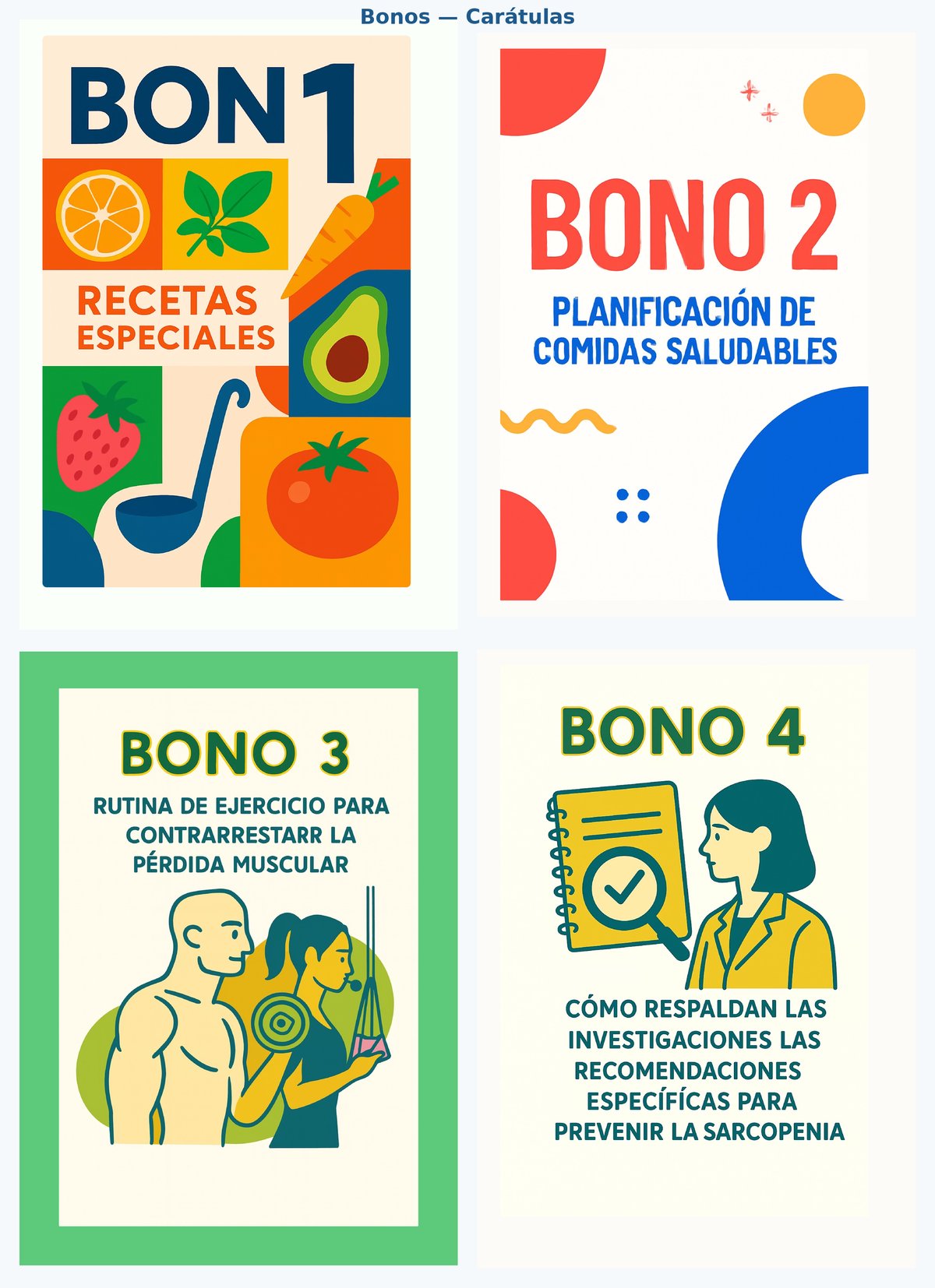 Reunimos productos digitales claros, sustentados en investigación, fáciles de descargar y utilizar —guías, menús, checklists, recetas, y sugerencias de preparación y otras recomendaciones—para ayudarte a cuidar tus músculos, proteger tu corazón, aliviar tus riñones, conservar y mejorar su memoria, y más, a través de alimentos reales y técnicas de cocina que respetan cada necesidad de salud.